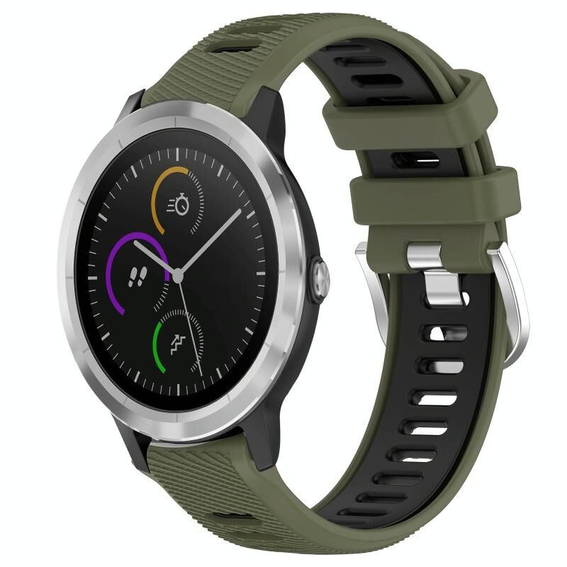 Για Garmin Vivoactive3 20mm Αθλητισμός Δύο χρώματα χάλυβα πόρπη σιλικόνης ρολόι μπάντα (Στρατού πράσινο + μαύρο)