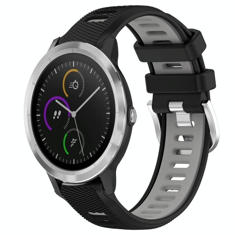 Για Garmin Vivoactive3 20mm Αθλητισμός Δύο-χρώμα χάλυβα πόρπη σιλικόνης ρολόι μπάντα (μαύρο + γκρι)