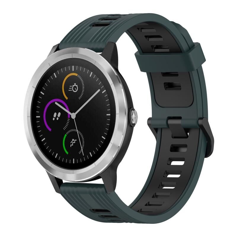 Για Garmin Vivoactive3 20mm Διπλόχρωμο Λουράκι Σιλικόνης με Κάθετο Σχέδιο (Χακί + Μαύρο)