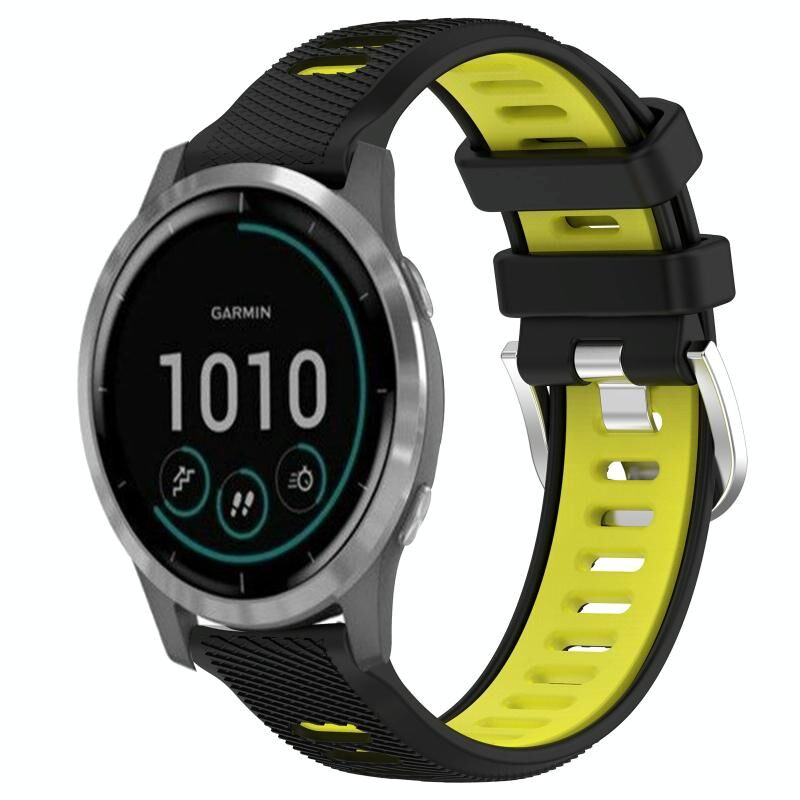 Για Garmin Vivoactive4 22mm Αθλητισμός Δύο χρώματα χάλυβα πόρπη σιλικόνης ρολόι μπάντα (μαύρο + πράσινο χρώμα)