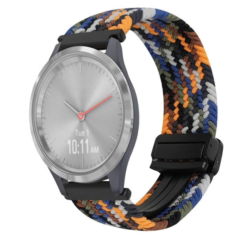 For Garmin Vivomove 3S 18mm Magnetic Buckle Braided Watch Band(Camouflage Colorful)