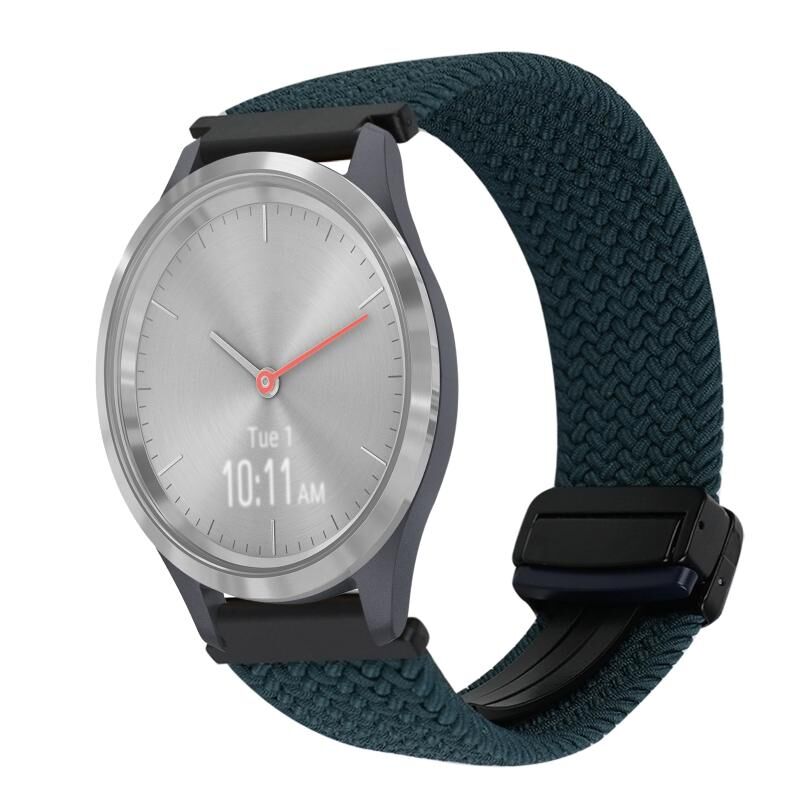 For Garmin Vivomove 3S 18mm Magnetic Buckle Braided Watch Band(Forest Green)