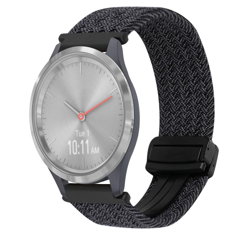 For Garmin Vivomove 3S 18mm Magnetic Buckle Braided Watch Band(Graphite Black)