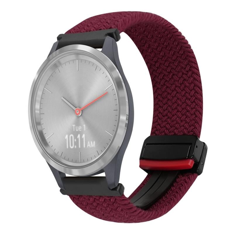 For Garmin Vivomove 3S 18mm Magnetic Buckle Braided Watch Band(Wine Red)