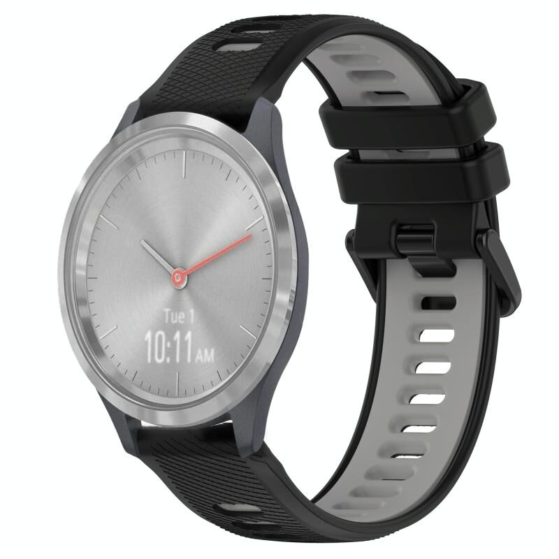 Για το Garmin Vivomove 3S 18mm Αθλητική ζώνη ρολογιού σιλικόνης δύο χρωμάτων (μαύρο+γκρι)