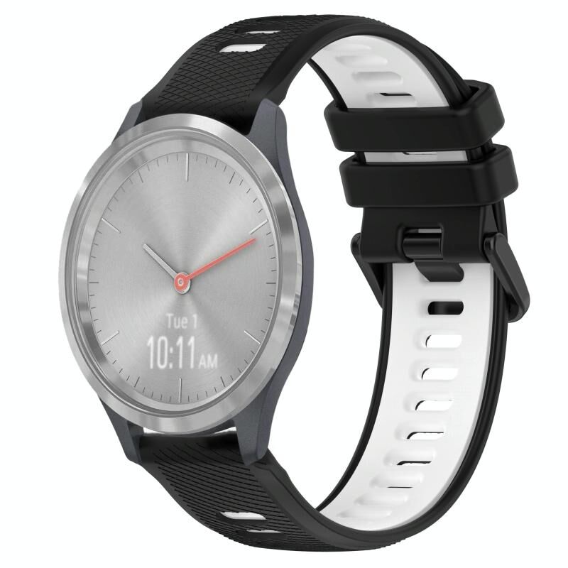 Για το Garmin Vivomove 3S 18mm Αθλητική ζώνη ρολογιού σιλικόνης δύο χρωμάτων (μαύρο+λευκό)