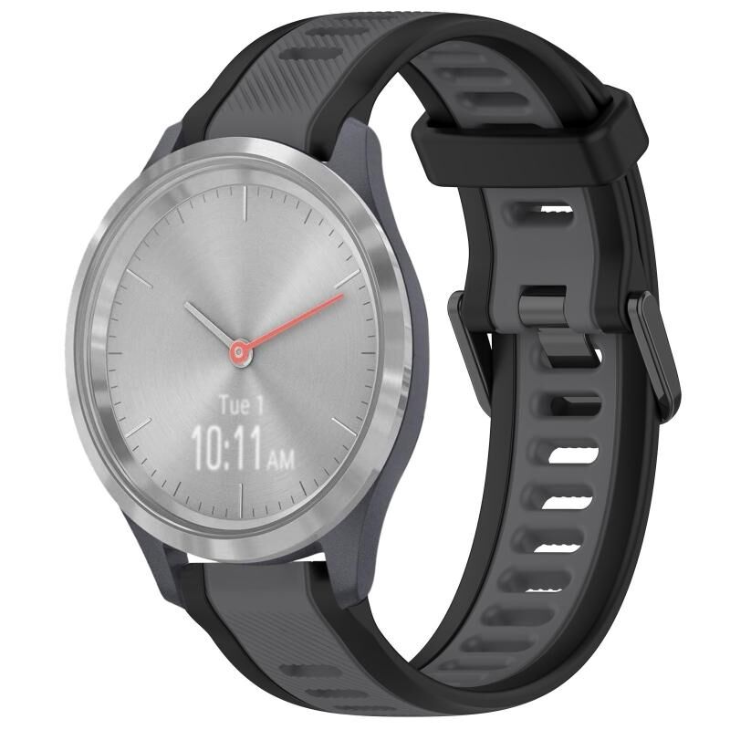 Για Garmin Vivomove 3S 18mm Δύο χρώματα υφή σιλικόνης ρολόι μπάντα ρολόι (γκρι + μαύρο)