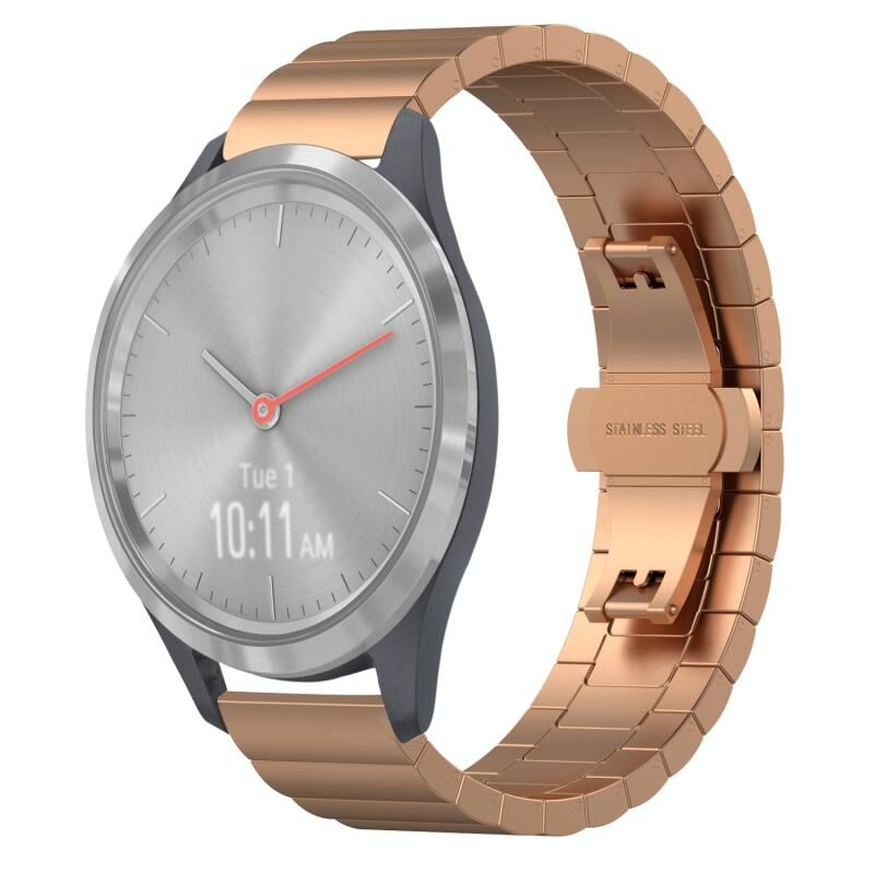 Για το Garmin Vivomove 3S One Bead Butterfly Buckle Stainless Steel Metal Watch Band (Rose Gold)
