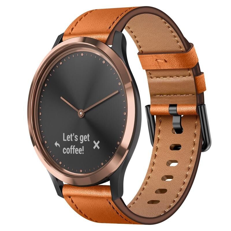 For Garmin Vivomove HR 20mm Metal Button Switch Leather Watch Band(Brown)