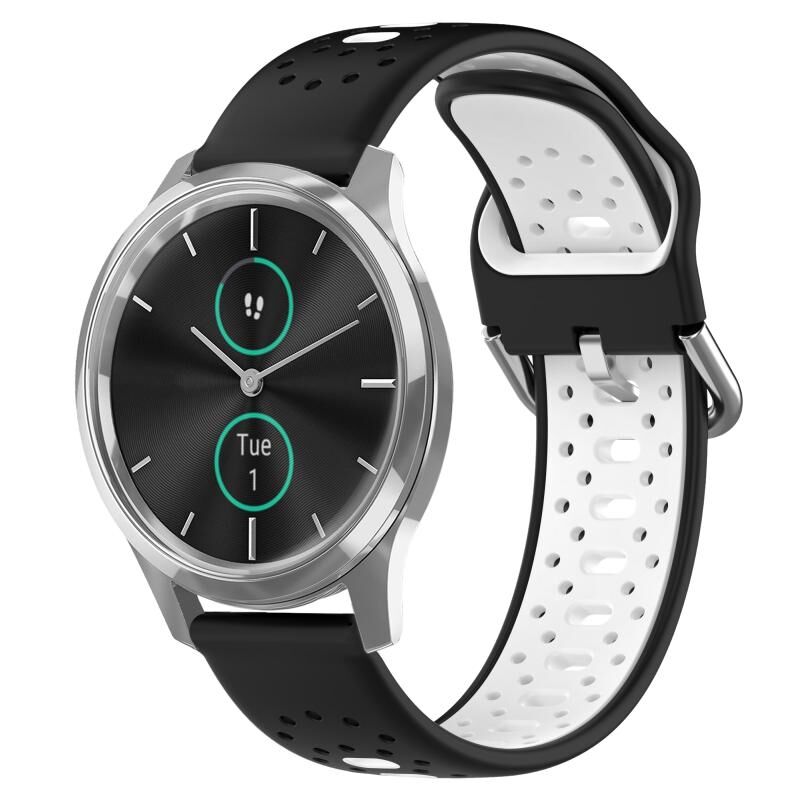 Για το Garmin VivoMove Luxe 20mm αναπνεύσιμο σιλικόνης ρολόι σιλικόνης δύο χρωμάτων (μαύρο+λευκό)