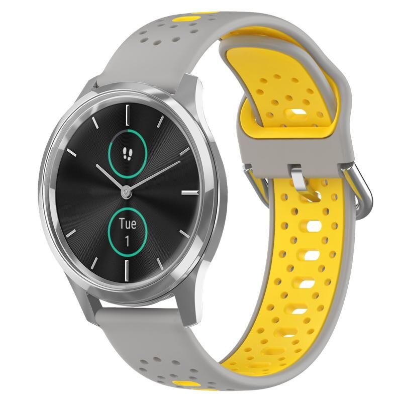 Για το Garmin VivoMove Luxe 20mm αναπνεύσιμο σιλικόνης ρολόι σιλικόνης δύο χρωμάτων (γκρι+κίτρινο)