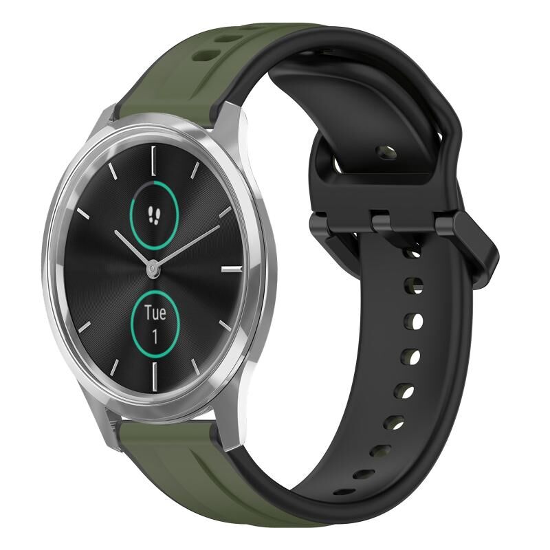 Για το Garmin VivoMove Luxe 20 χιλιοστά κυρτό βρόχο σιλικόνης δύο χρωμάτων (σκούρο πράσινο+μαύρο)