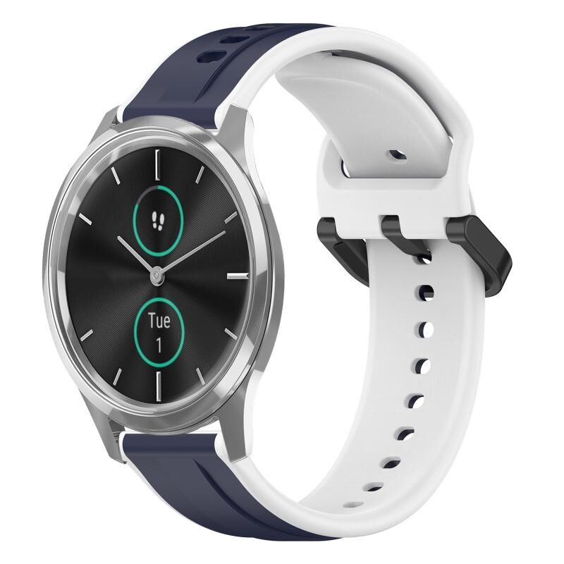 Για το Garmin VivoMove Luxe 20mm Convex Loop Δύο χρωμάτων σιλικόνης ρολόι μπάντα (Midnight Blue + Λευκό)