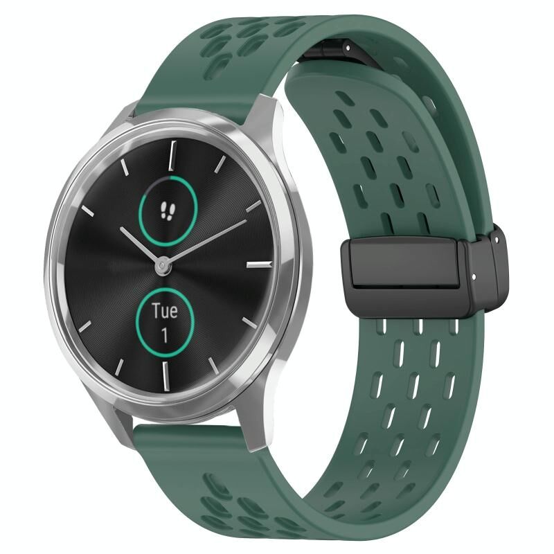 Για Garmin VivoMove Luxe 20mm Πτυσσόμενο μαγνητικό κούμπωμα ζώνη ρολογιού σιλικόνης (σκούρο πράσινο)