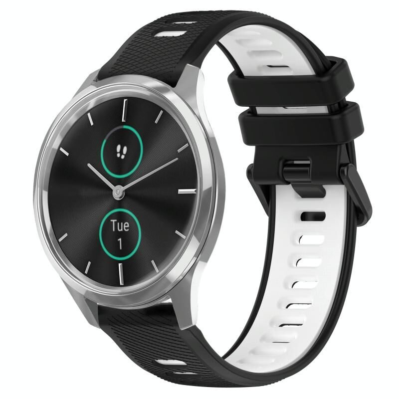 Για το Garmin VivoMove Luxe 20mm Αθλητική ζώνη ρολογιού σιλικόνης δύο χρωμάτων (μαύρο+λευκό)