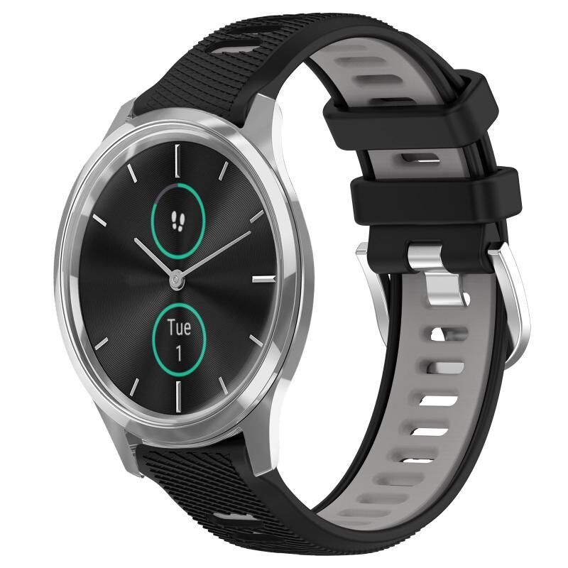 Για Garmin VivoMove Luxe 20mm Αθλητισμός Δύο-χρώμα χάλυβα πόρπη σιλικόνης ρολόι μπάντα (μαύρο + γκρι)