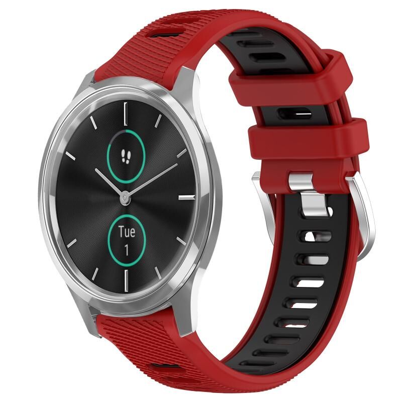 Για Garmin VivoMove Luxe 20mm Αθλητισμός Δύο χρωμάτων χάλυβα πόρπη σιλικόνης ρολόι μπάντα (κόκκινο + μαύρο)