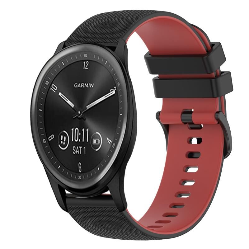 For Garmin Vivomove Sport 20mm Checkered Two-Color Silicone Watch Band(Black+Red)