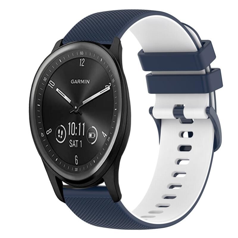 For Garmin Vivomove Sport 20mm Checkered Two-Color Silicone Watch Band(Dark Blue+White)