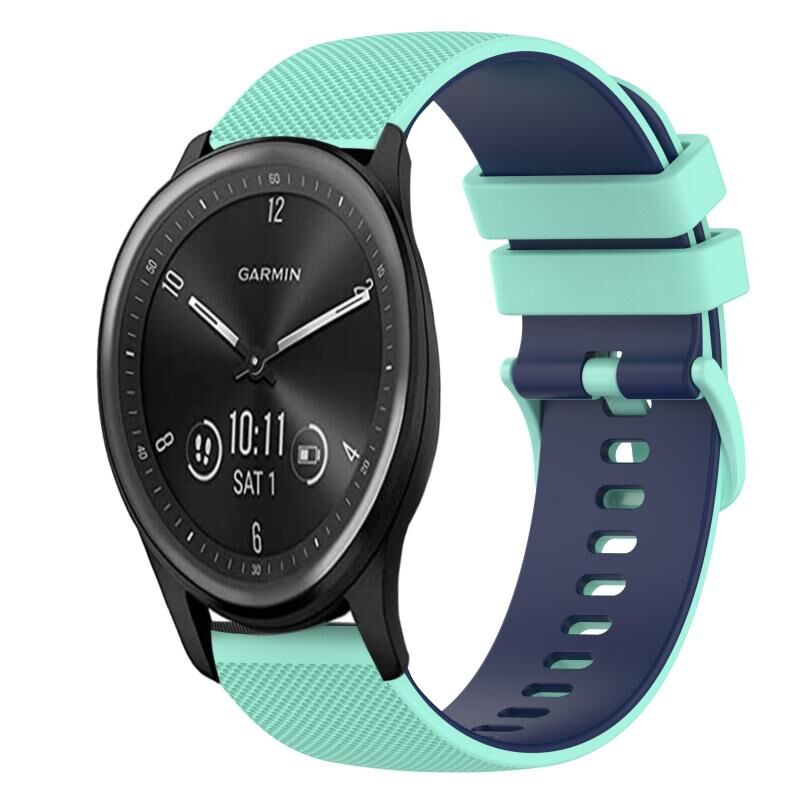 For Garmin Vivomove Sport 20mm Checkered Two-Color Silicone Watch Band(Teal+Blue)