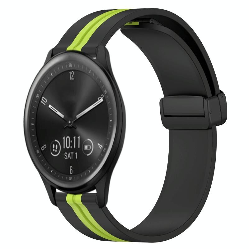 Για Garmin Vivomove Sport 20mm Πτυσσόμενο μαγνητικό κούμπωμα ζώνη ρολογιού σιλικόνης (Μαύρο + πράσινο χρώμα)