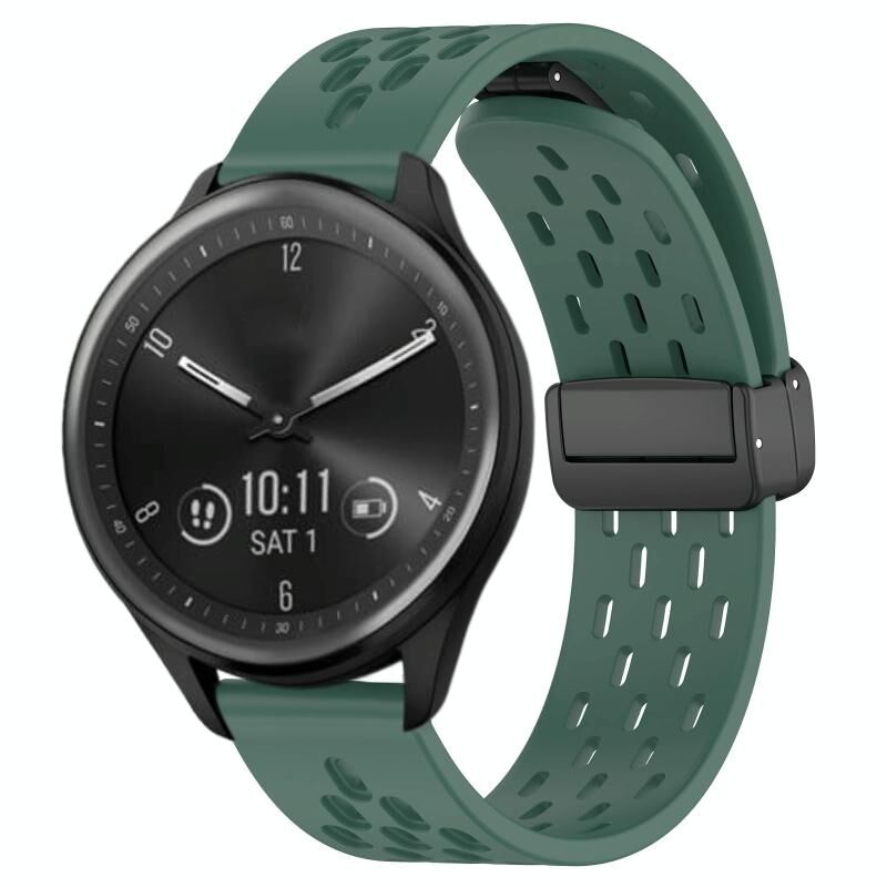 Για Garmin Vivomove Sport 20mm Πτυσσόμενο μαγνητικό κούμπωμα ζώνη ρολογιού σιλικόνης (σκούρο πράσινο)