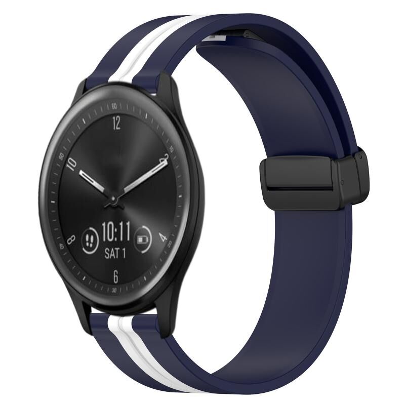Για Garmin Vivomove Sport 20mm Πτυσσόμενο μαγνητικό κούμπωμα ζώνη ρολογιού σιλικόνης (Μπλε + Λευκό)