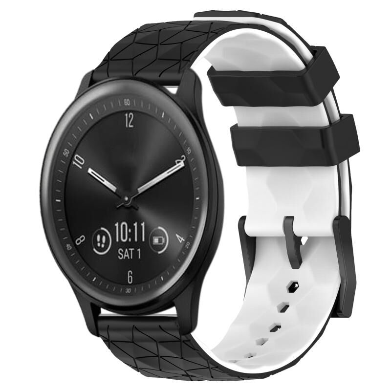 Για Garmin Vivomove Sport 20mm ποδοσφαίρου μοτίβο δύο χρωμάτων σιλικόνης ρολόι μπάντα (μαύρο + λευκό)