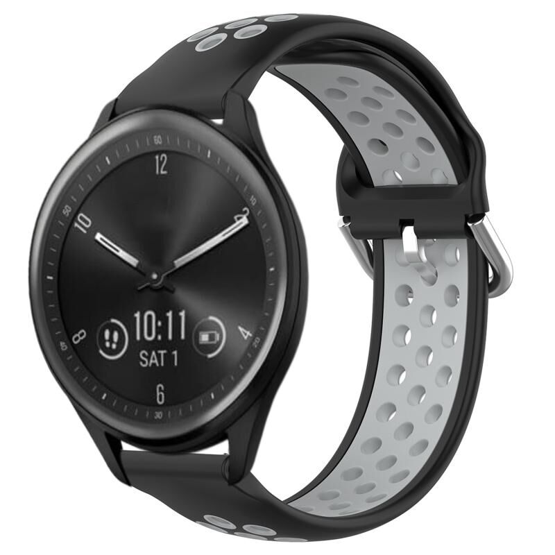 Για Garmin Vivomove Sport 20mm διάτρητο διαπνέον αθλητικό λουράκι σιλικόνης (μαύρο + γκρι)
