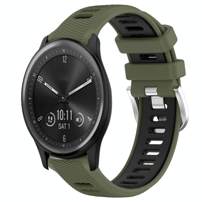 Για Garmin Vivomove Sport 20mm Αθλητισμός Δύο χρώματα χάλυβα πόρπη σιλικόνης ρολόι μπάντα (Στρατού πράσινο + μαύρο)