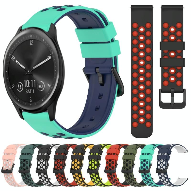 Για το Garmin Vivomove Sport 20 χιλιοστά δύο χρωμάτων πορώδες λουράκι σιλικόνης ρολόι (Lime Green + μπλε)