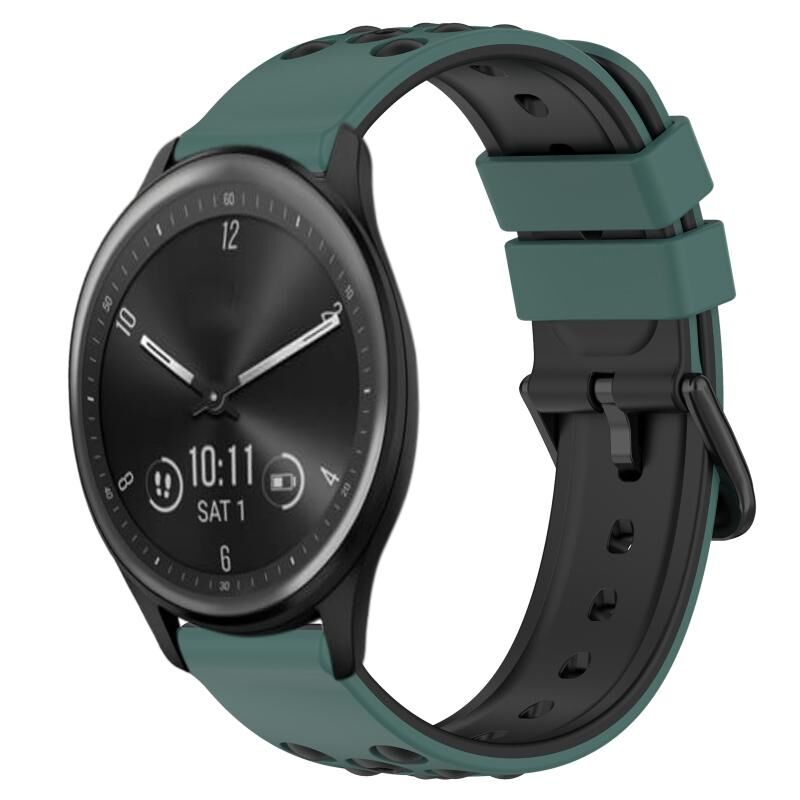 Για το Garmin Vivomove Sport 20 χιλιοστά δύο χρωμάτων πορώδες λουράκι σιλικόνης ρολόι (Olive Green + Μαύρο)