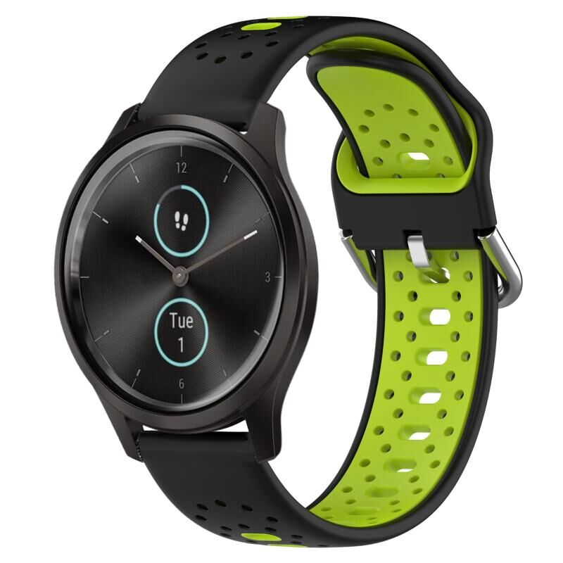 Για το Garmin VivoMove Style 20mm αναπνεύσιμο συγκρότημα ρολογιού σιλικόνης δύο χρωμάτων (μαύρο + πράσινο χρώμα)