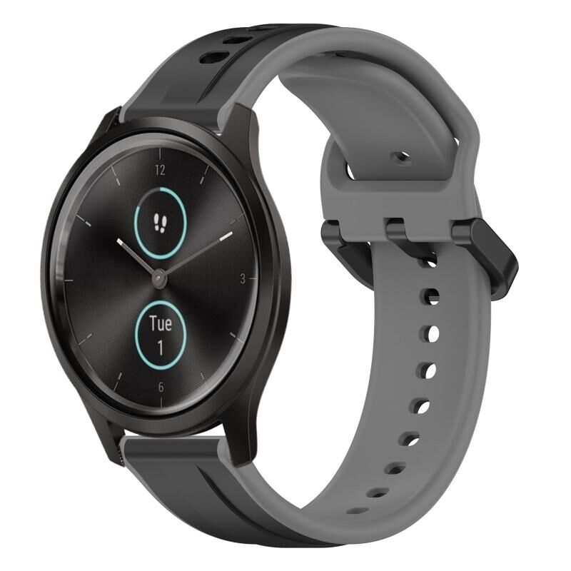 Για το Garmin VivoMove Style 20mm Convex Loop Two-Color Silicone Watch Band (Μαύρο+Γκρι)
