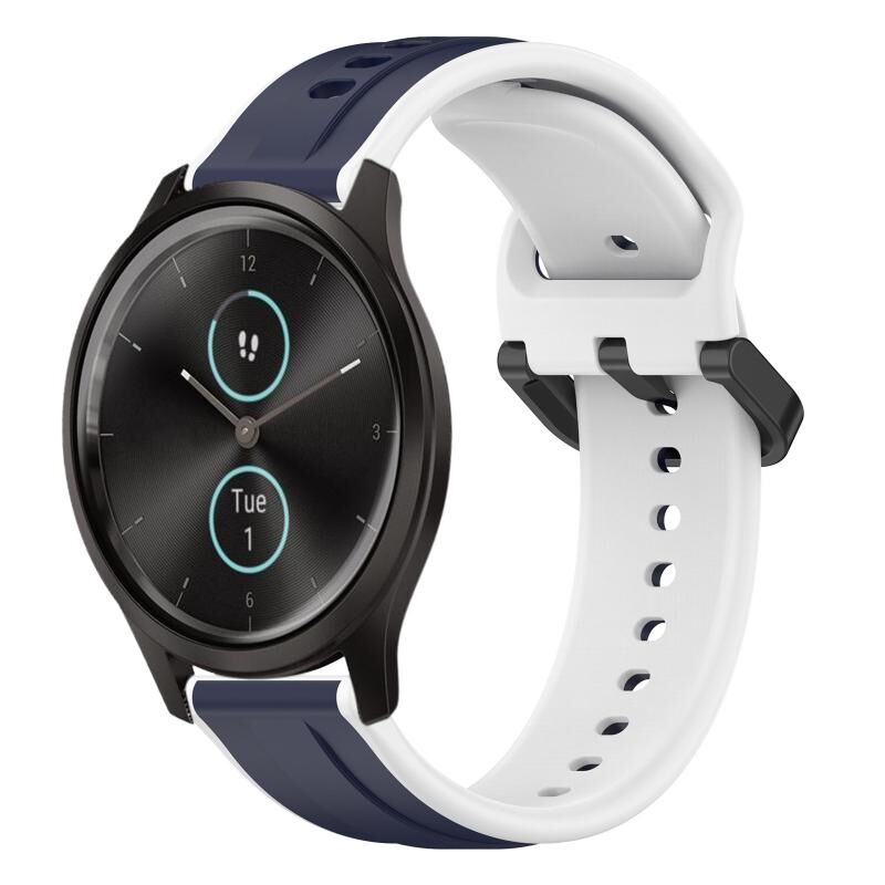 Για το Garmin VivoMove Style 20 χιλιοστά κυρτό βρόχο δύο χρωμάτων ζώνη σιλικόνης ρολόι (Midnight Blue + Λευκό)