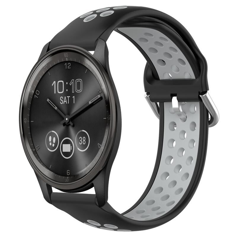 Για το Garmin Vivomove Trend 20mm διάτρητο διαπνέον αθλητικό λουράκι σιλικόνης (μαύρο + γκρι)