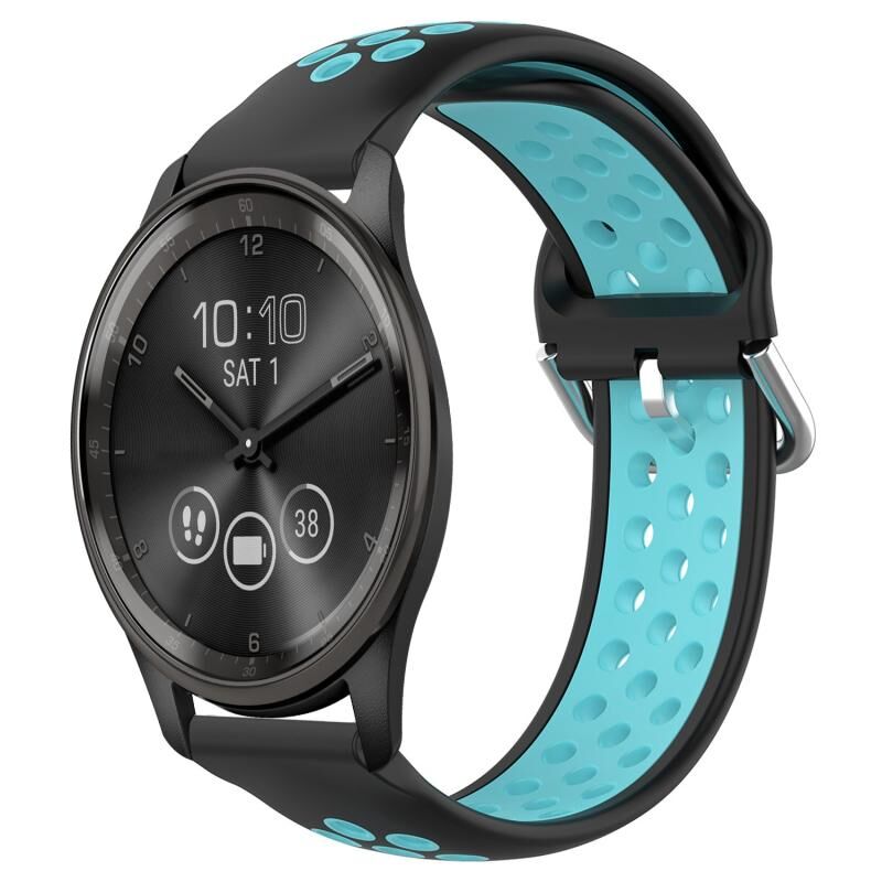 Για το Garmin Vivomove Trend 20mm διάτρητη αναπνεύσιμη αθλητική ζώνη ρολογιού σιλικόνης (μαύρο + μπλε)