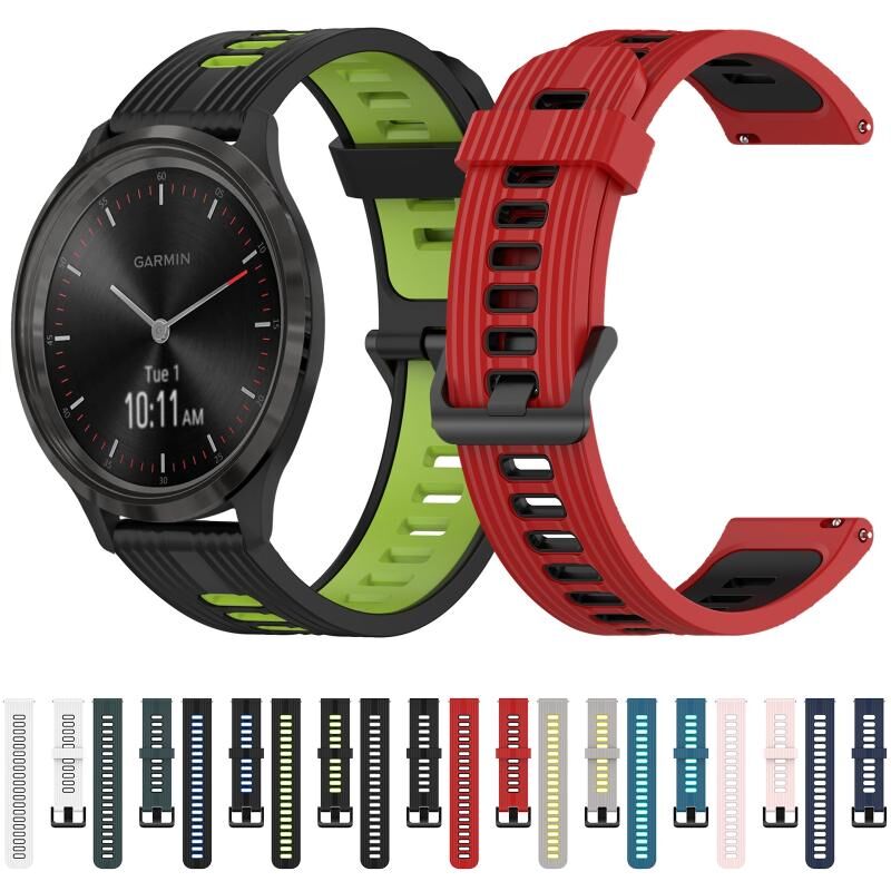 Για Garmin Vivomove3 20mm Κάθετο Μοτίβο Διχρωμικό Λουράκι Σιλικόνης Ρολογιού (Λευκό+Μαύρο)