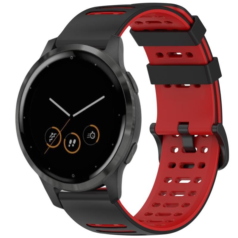 Για το ρολόι Garmin 22mm κοίλο τρεις σειρές τρύπα δύο χρωμάτων σιλικόνης ρολόι μπάντα (μαύρο + κόκκινο)