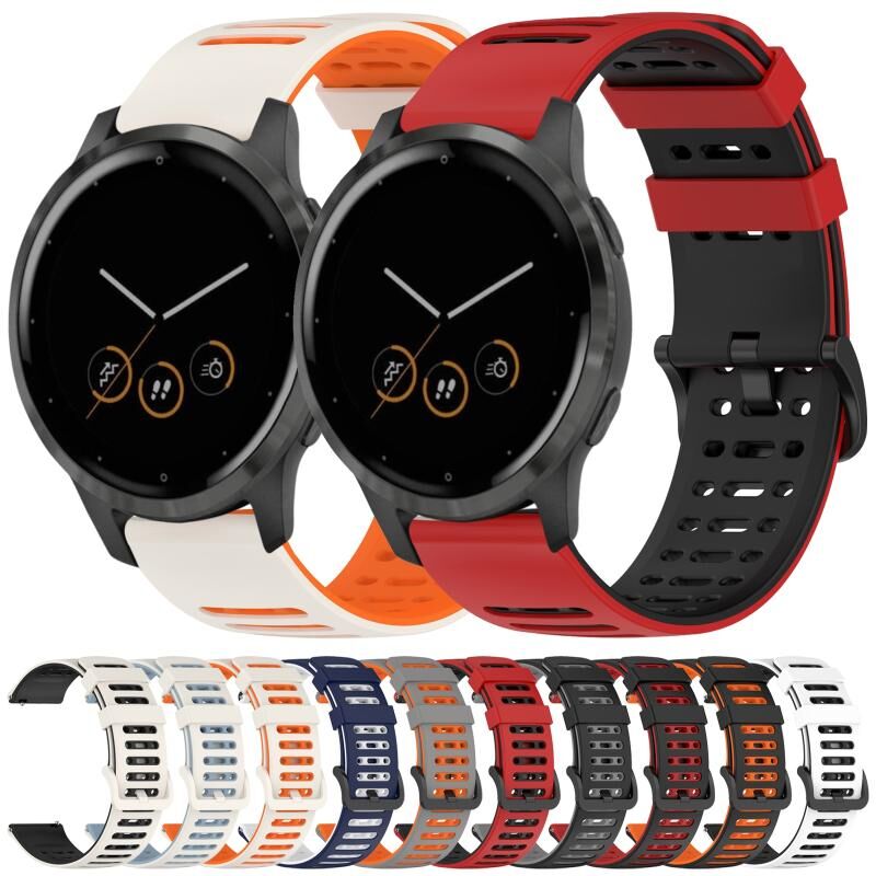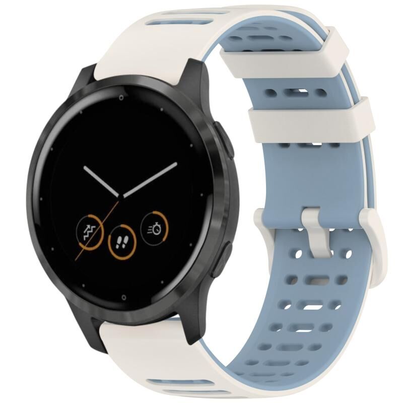 Για το ρολόι Garmin 22mm κοίλο τρεις σειρές τρύπα δύο χρωμάτων σιλικόνης ρολόι μπάντα (Starlight + μπλε)
