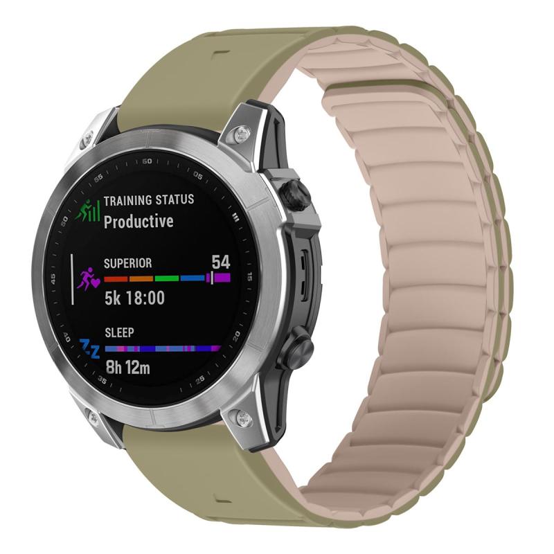 For Garmin Watch 26mm Quick Release Silicone Sport Magnetic Watch Band(Camel+Bean Pink)