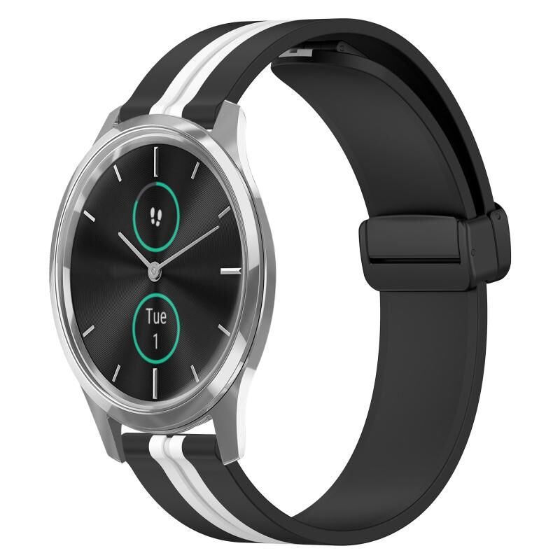 Για Garminmove Luxe 20mm Πτυσσόμενο μαγνητικό κούμπωμα ζώνη ρολογιού σιλικόνης (μαύρο+λευκό)