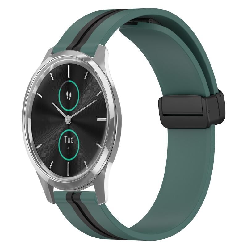 Για Garminmove Luxe 20mm Πτυσσόμενο μαγνητικό κούμπωμα ζώνη ρολογιού σιλικόνης (Olive Green + Μαύρο)