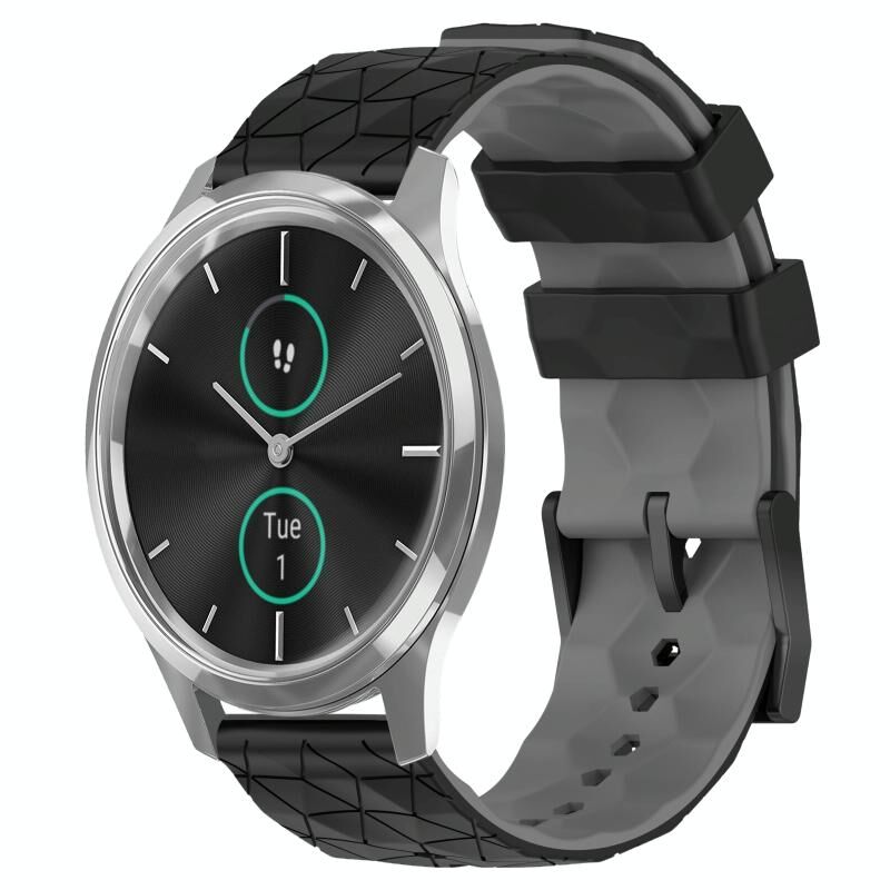 Για Garminmove Luxe 20mm ποδοσφαιρικό μοτίβο δύο χρωμάτων σιλικόνης ρολόι μπάντα ρολογιού (μαύρο + γκρι)
