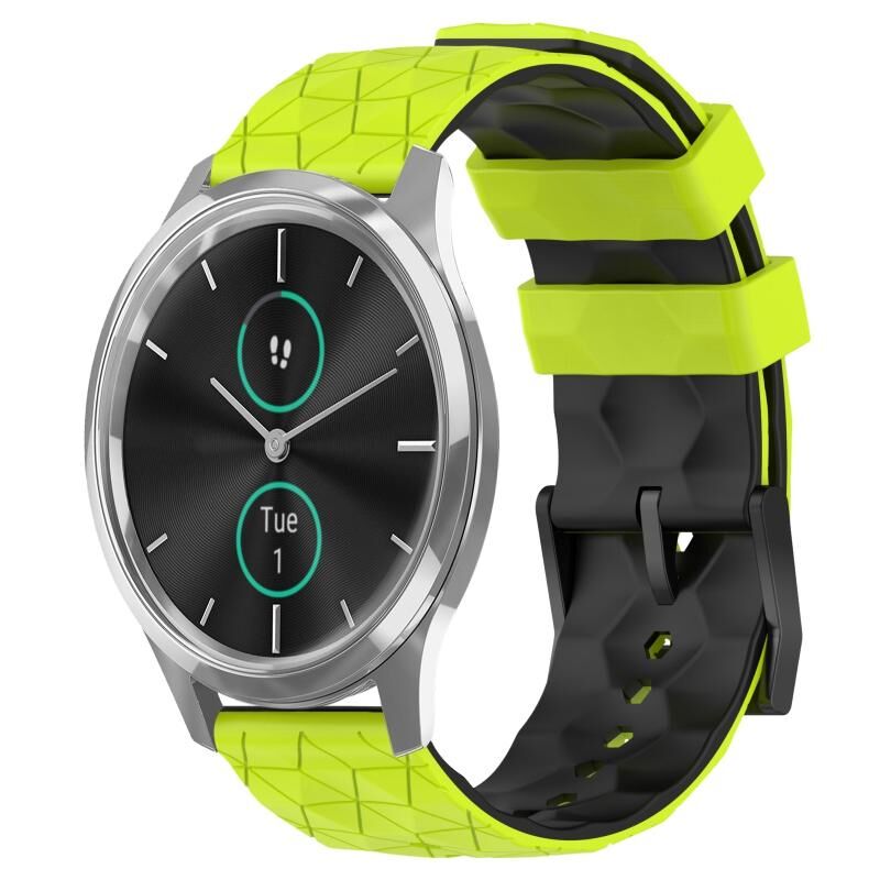 Για Garminmove Luxe 20mm ποδοσφαιρικό μοτίβο δύο χρωμάτων σιλικόνης ρολόι μπάντα ρολογιού (πράσινο χρώμα + μαύρο)