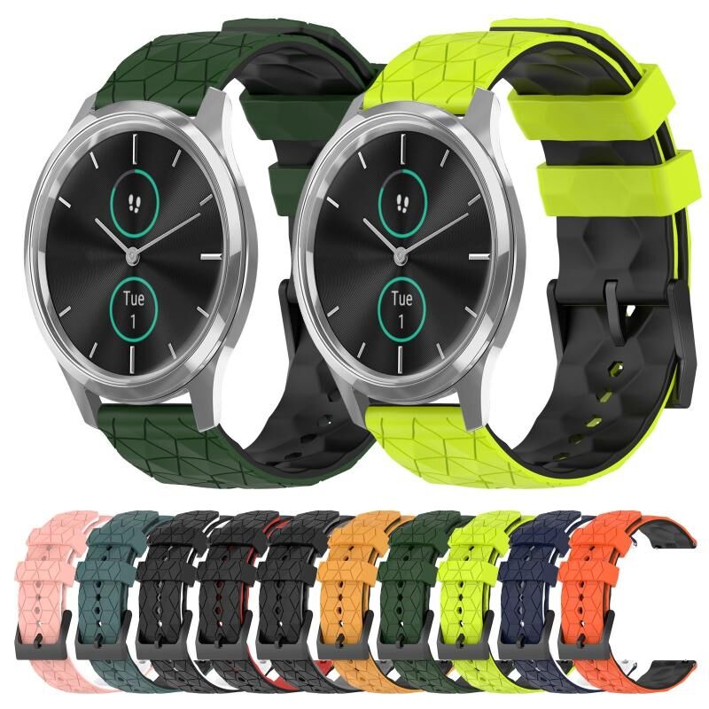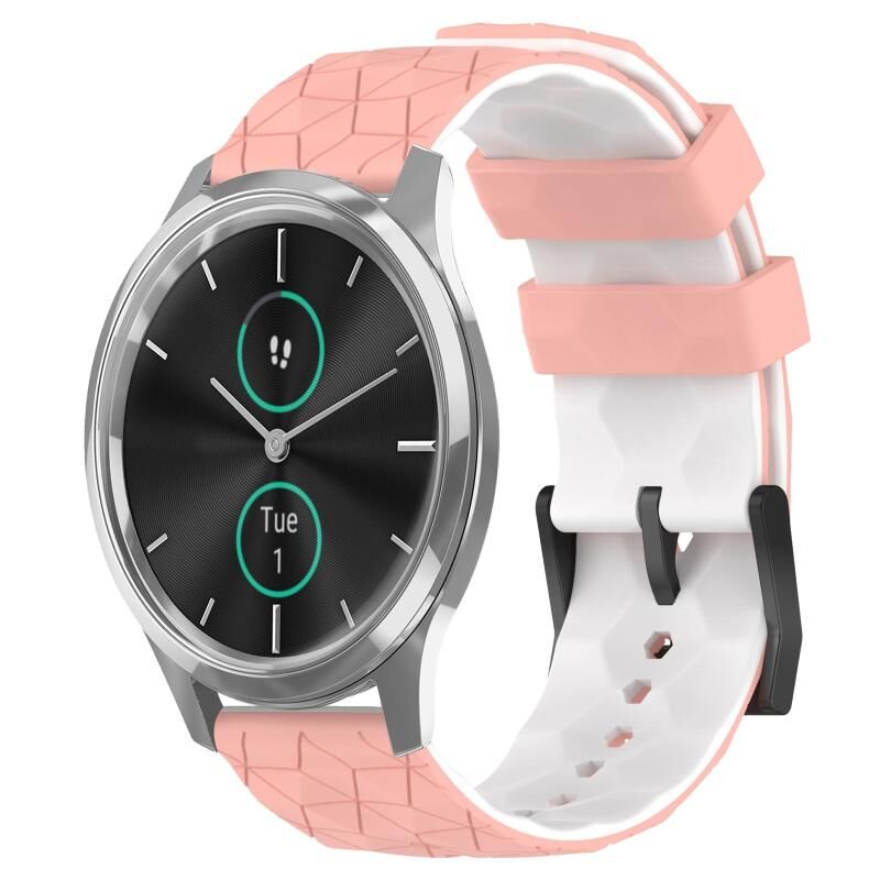 Για Garminmove Luxe 20mm ποδοσφαιρικό μοτίβο δύο χρωμάτων σιλικόνης ρολόι μπάντα ρολογιού (ροζ + λευκό)