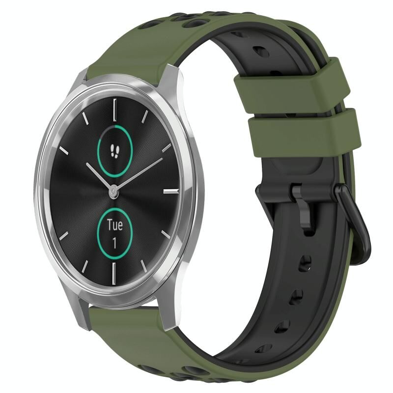 Για το Garminmove Luxe 20 χιλιοστά δύο χρωμάτων πορώδες λουράκι σιλικόνης ρολόι (πράσινο στρατού + μαύρο)