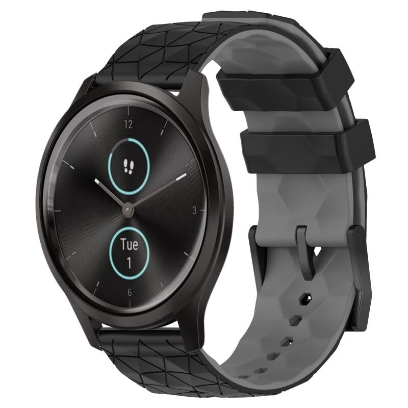 Για το Garminmove Style 20 χιλιοστά ποδοσφαιρικό μοτίβο δύο χρωμάτων σιλικόνης ρολόι μπάντα (μαύρο + γκρι)