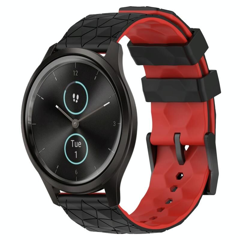 Για Garminmove Style 20mm ποδοσφαιρικό μοτίβο δύο χρωμάτων σιλικόνης ρολόι μπάντα ρολογιών (μαύρο + κόκκινο)