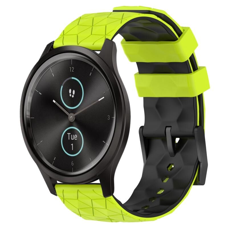 Για το Garminmove Style 20 χιλιοστά ποδοσφαιρικό μοτίβο δύο χρωμάτων σιλικόνης ρολόι μπάντα ρολογιού (πράσινο χρώμα + μαύρο)